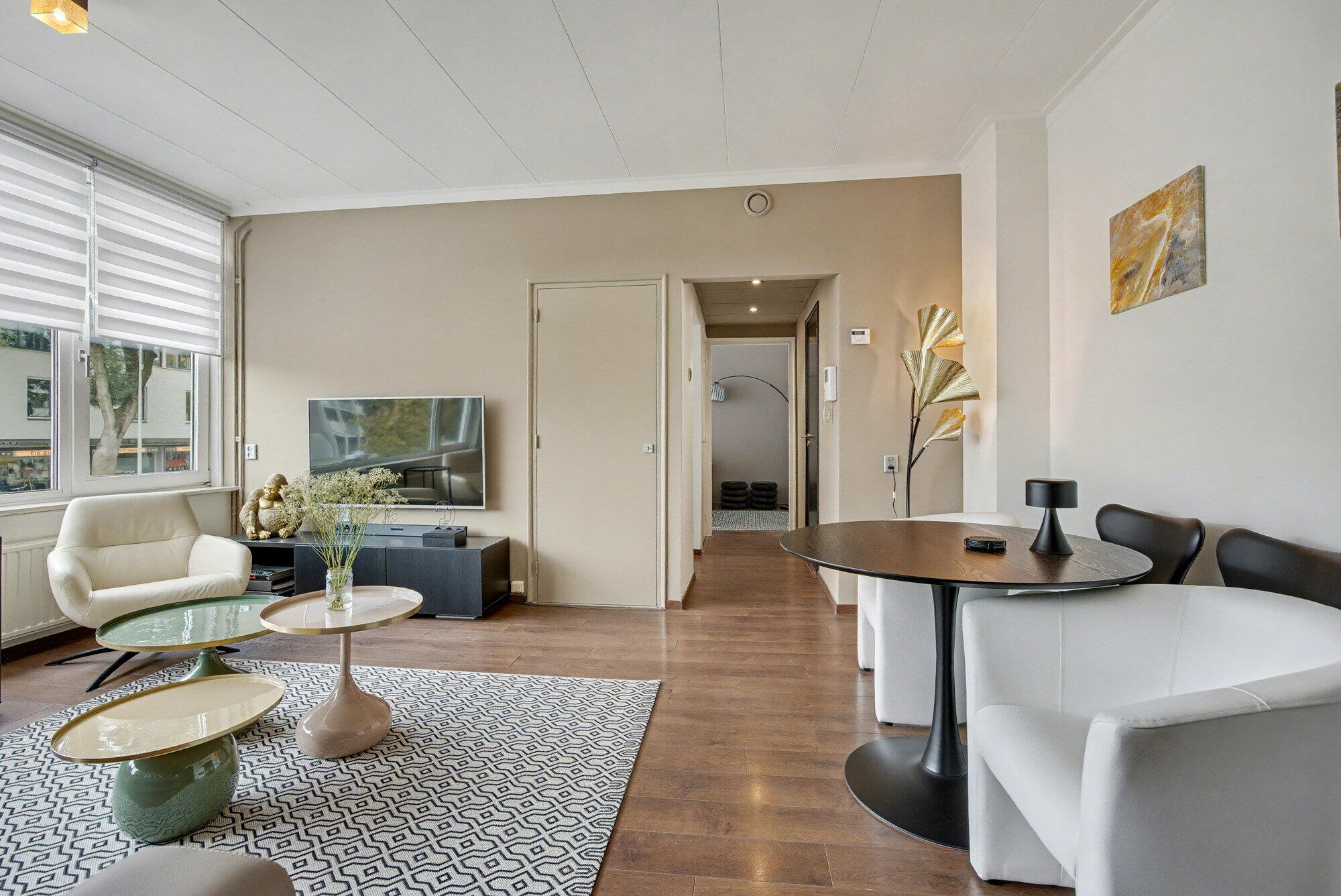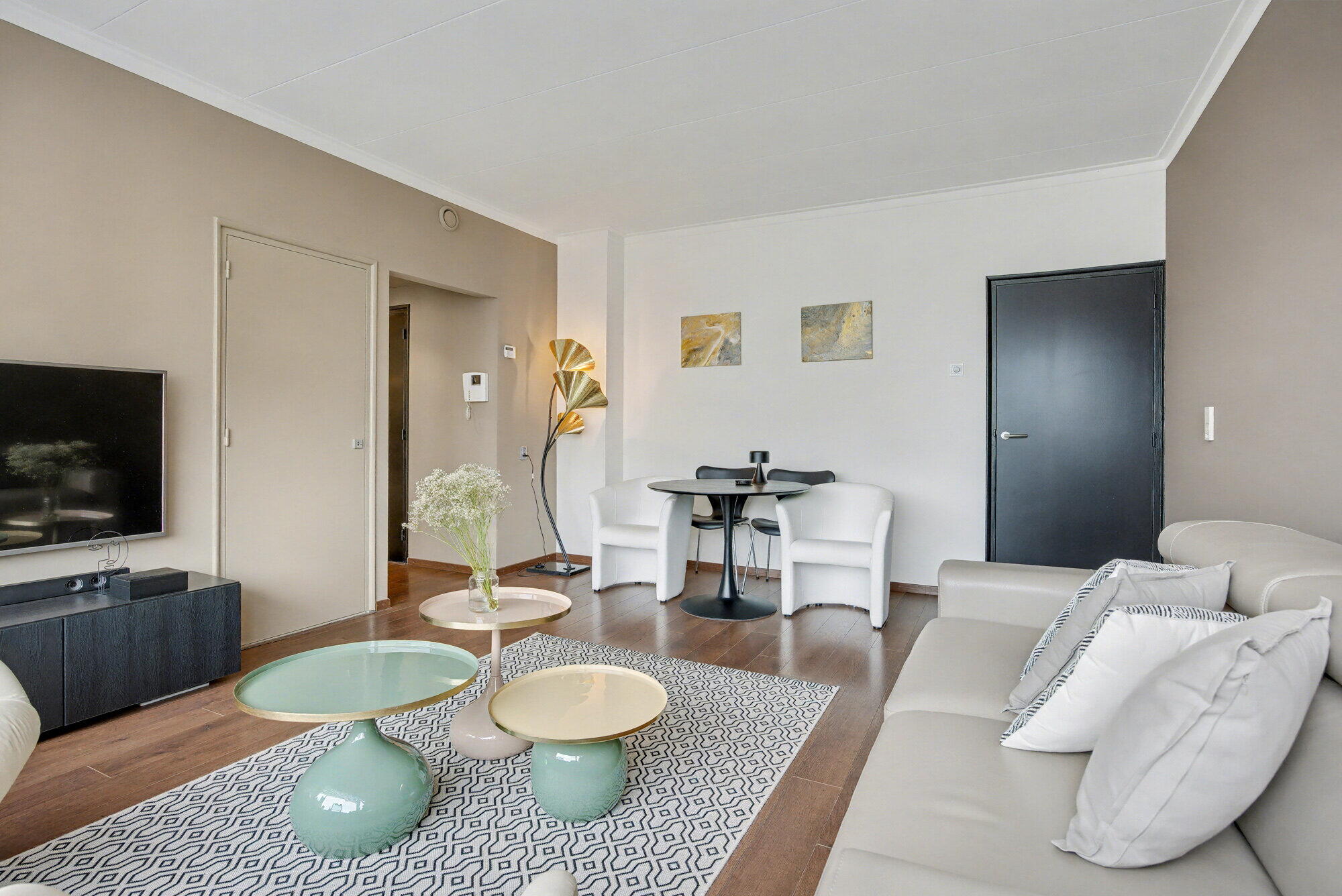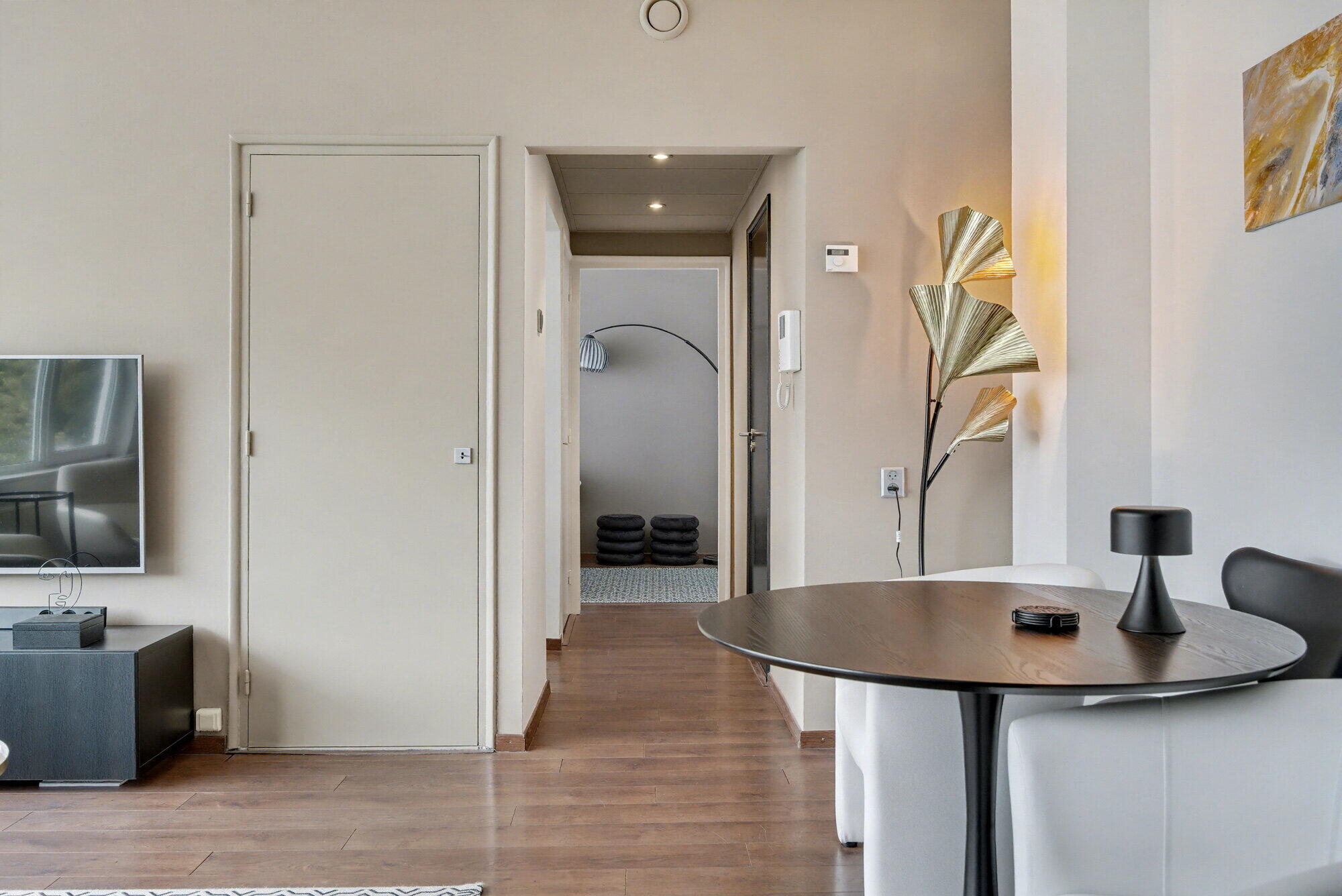 In het hele appartement overheerst een neutraal kleurenpalet. De ruimte biedt een efficiënte balans tussen stijl en functionaliteit, waardoor het een ideale stedelijke woning is voor wie op zoek is naar een moderne, onderhoudsvriendelijke levensstijl in het hart van Maastricht.